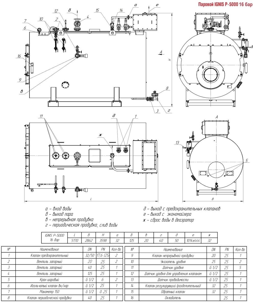 Технические характеристики парового трёхходового котла ARCUS IGNIS P-5000